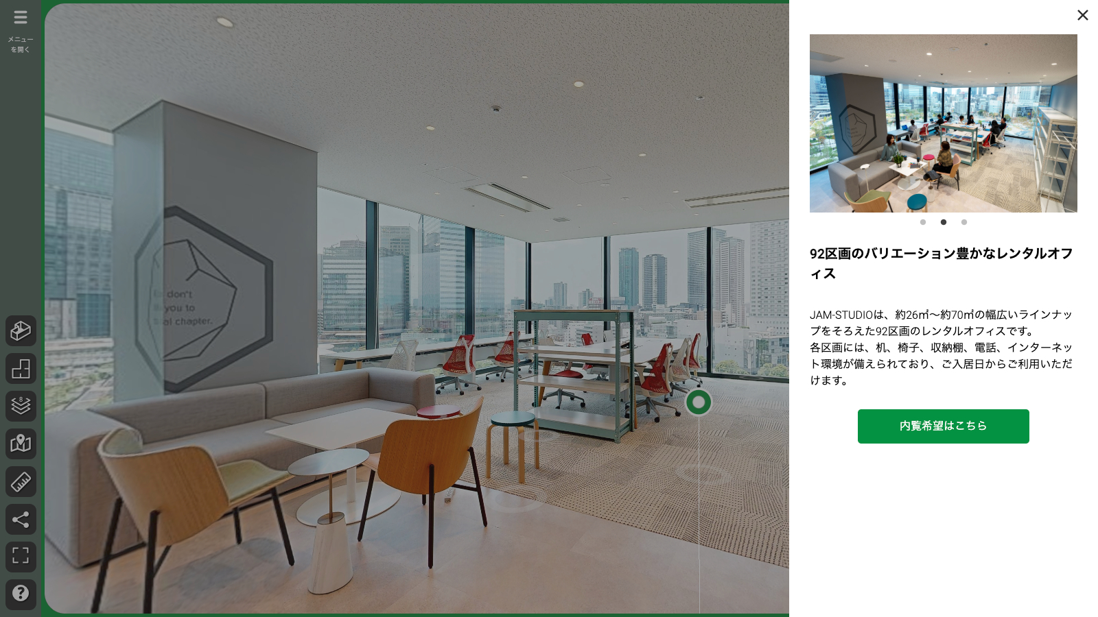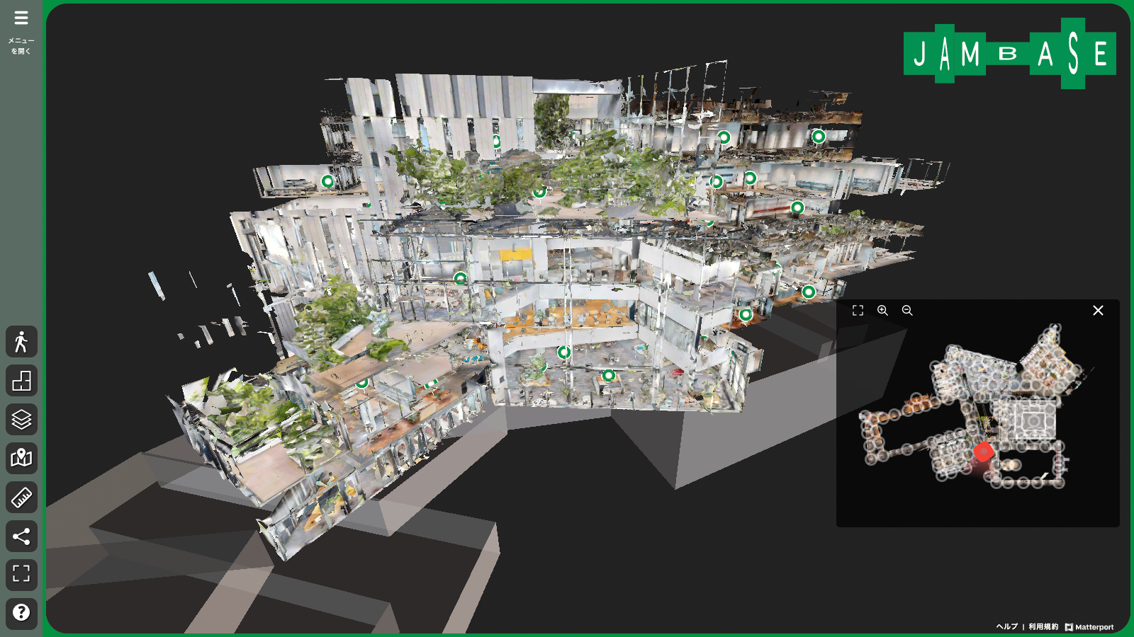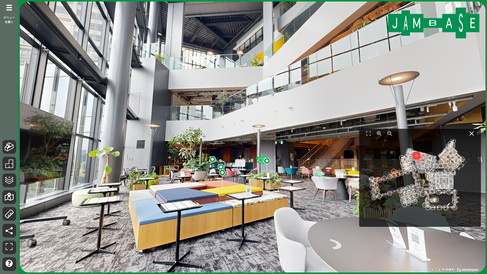 2024年9月に大阪駅北側の「グラングリーン大阪」プロジェクトの中核施設として開業したイノベーション拠点JAM BASEのバーチャル内覧事例です。